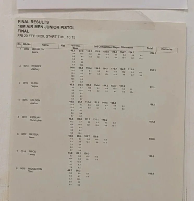 British Open Air-Gun Championships 2026 Results Friday 20 February 2026 Saturday 21 February 2026 Sunday 22 February 2026 Saturday 28 February 2026